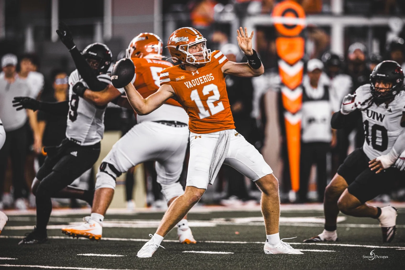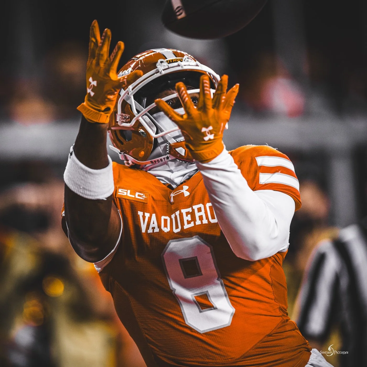 He opened his day with a pair of touchdown passes to tight end Ismael Smith Flores (25 and 43 yards) to give the Vaqueros an early 14-0 lead.