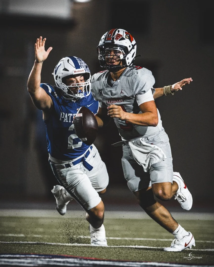 The Patriots’ defense came up big after Reyna gave the team the lead, with senior Guillermo Garcia chasing down Cardinals quarterback Gavin Cisneros and stripping him of the ball to force a turnover and secure the win.