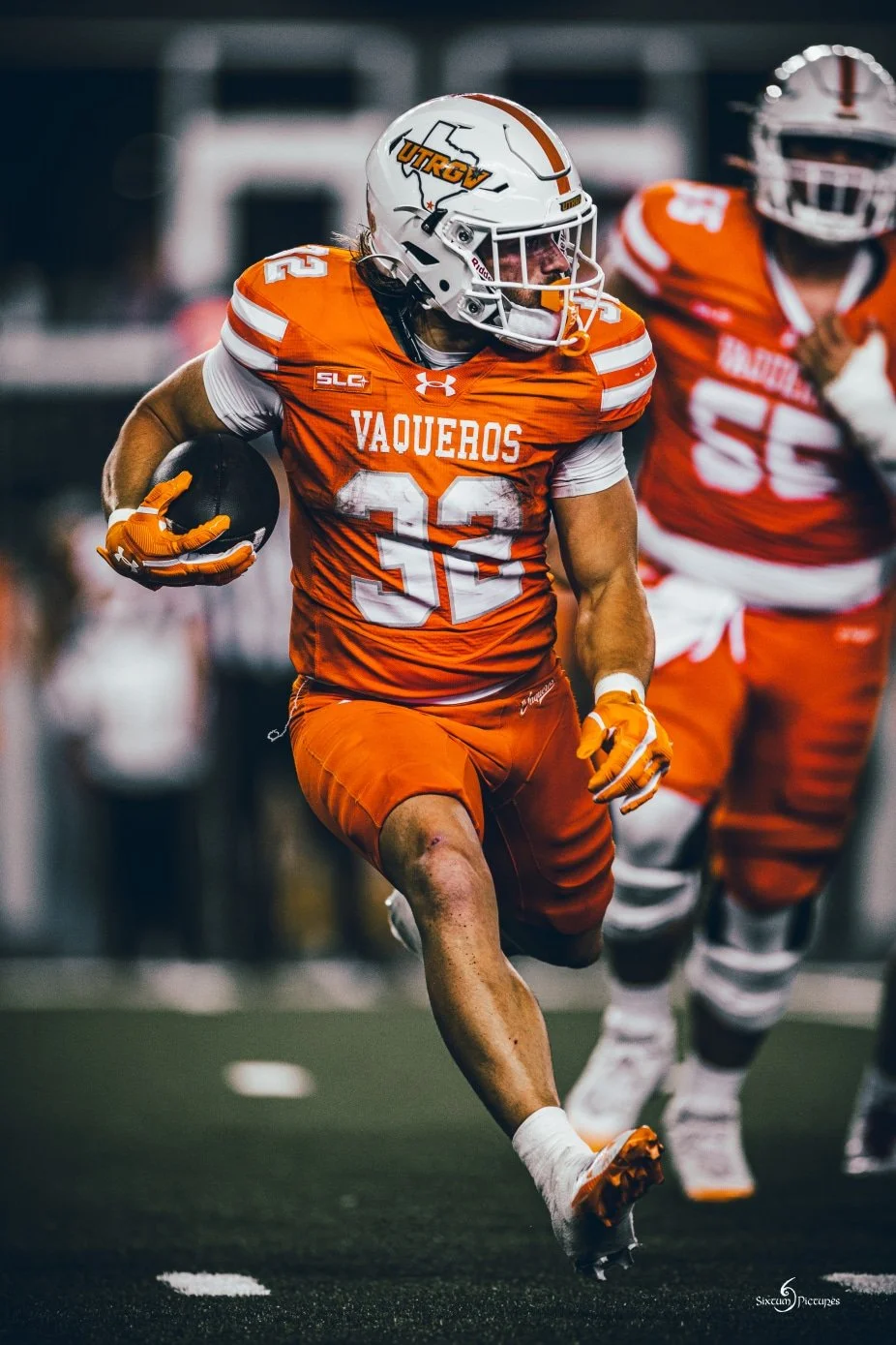 The graduate student exploded for a 12-yard carry on the game’s first play, then followed it with another run for a first down. The sequence set the tone for a career performance, as Denney rushed for a career-high 120 yards and two touchdowns to lead the Vaqueros past the Colonels 28-14 at Robert and Janet Vackar Stadium.